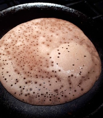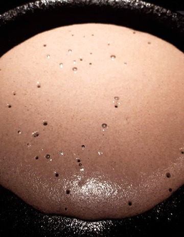 • add 1/2 cup of the batter into the centre of the skillet and quickly aid the spreading with the bottom of a measuring cup to help thin batter out. If you skip this step you will get a thicker, dense wrap.