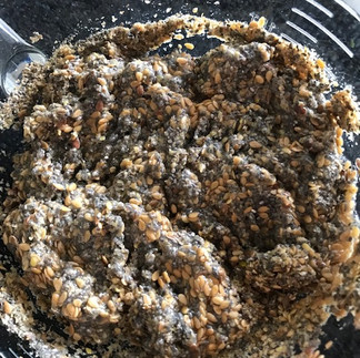 In a separate small bowl mix the remaining flax, chia, black cumin and sesame seeds